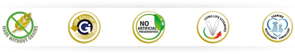 Farmina Natural & Delicious Prime est une ligne de produits naturels sans céréales, développée scientifiquement en fonction de la nature carnivore des chiens. L’aliment a un faible indice glycémique et contient des extraits riches en tocophérols, qui permettent au produit de se fixer naturellement. Natural & Delicious Prime est également riche en vitamines de haute qualité, grâce à l’utilisation de l’injection à froid après le processus de cuisson, qui empêche les vitamines d’être endommagées par la chaleur.