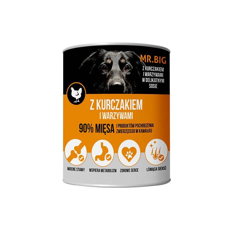 ALIMENT COMPLET AU POULET ET AUX LÉGUMES, EN MORCEAUX DANS UNE SAUCE DÉLICATE, POUR CHIENS ADULTES DE TOUTES RACES.
