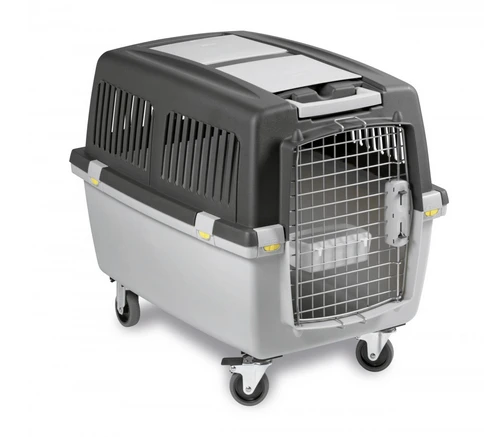 Conforme aux normes IATA (reconnu par presque toutes les compagnies aériennes). Transporteur robuste avec porte métallique. Des loquets sûrs et verrouillables. Large poignée à l’avant, idéale pour tirer (kit de roues non inclus). Équipé d’un bol à nourriture (fixé à la porte) et de 2 compartiments de rangement. Les fentes permettent une bonne circulation de l’air. Fabriqué en plastique et en métal.